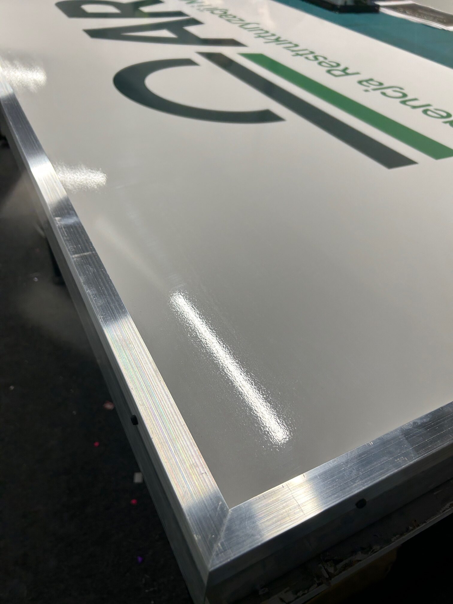 Materiał: kaseton w ramie aluminiowej, kaseton frezowany z dibondu, kaseton z pleksi.