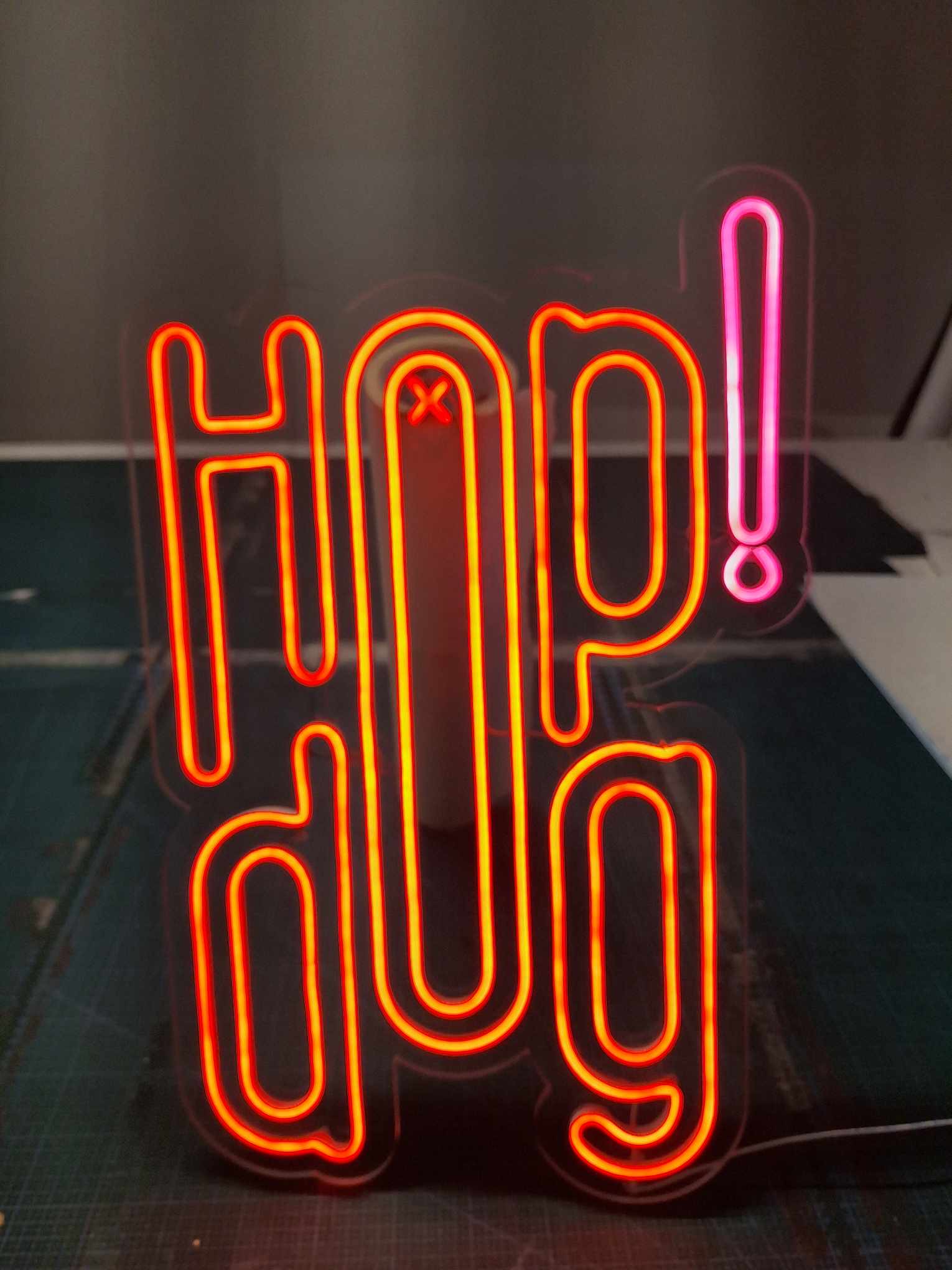 Materiał: pleksi + taśma ledowa.